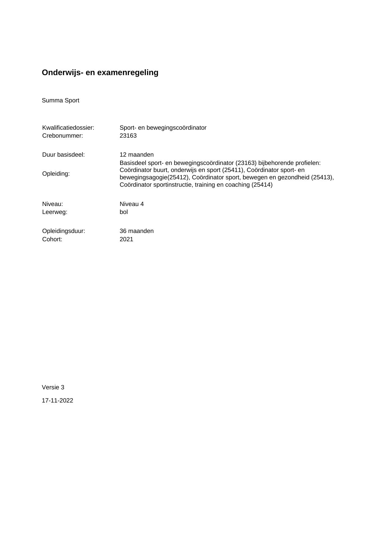 Sport- en bewegingscoördinator 23163BOL36.01 in cohort 2021-2022