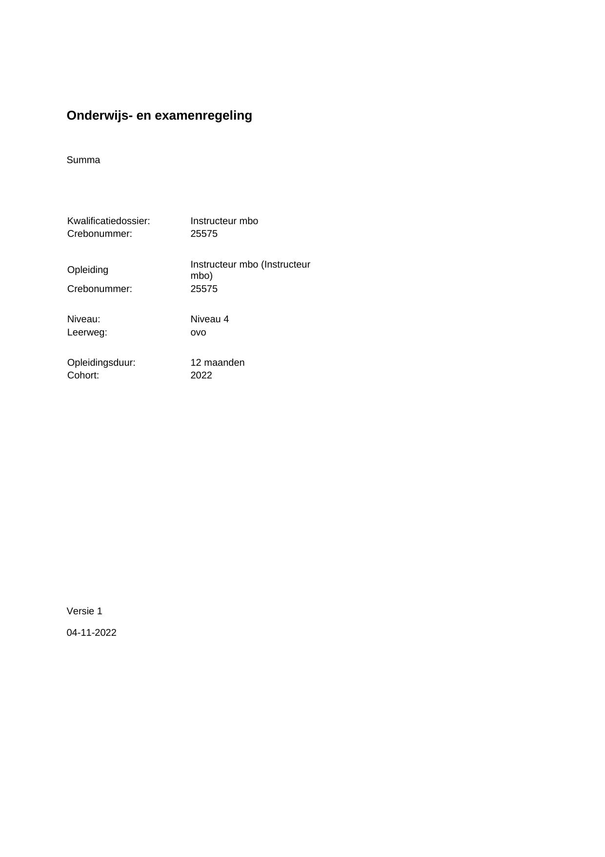 Instructeur mbo (Instructeur mbo) 25575OVO12.01 in cohort 2022-2023
