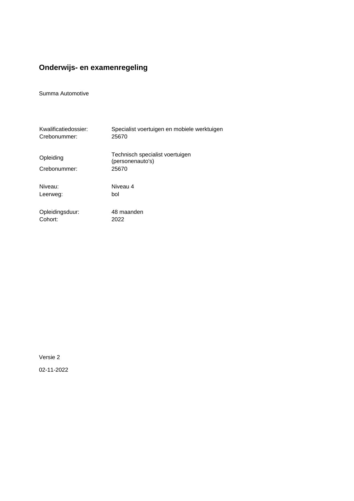Technisch leidinggevende (Automotive) 25161BBL12.02 in cohort 2022-2023