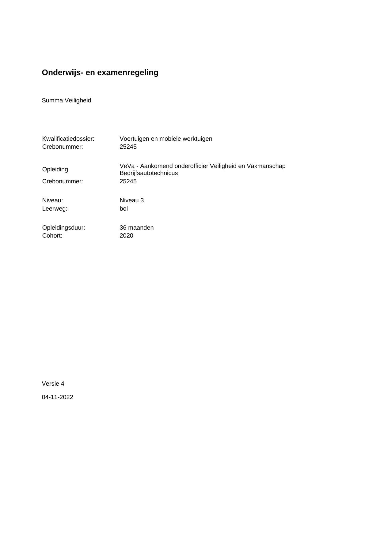 VeVa - Aankomend onderofficier Veiligheid en Vakmanschap Bedrijfsautotechnicus 25245BOL36.02 in cohort 2020-2021