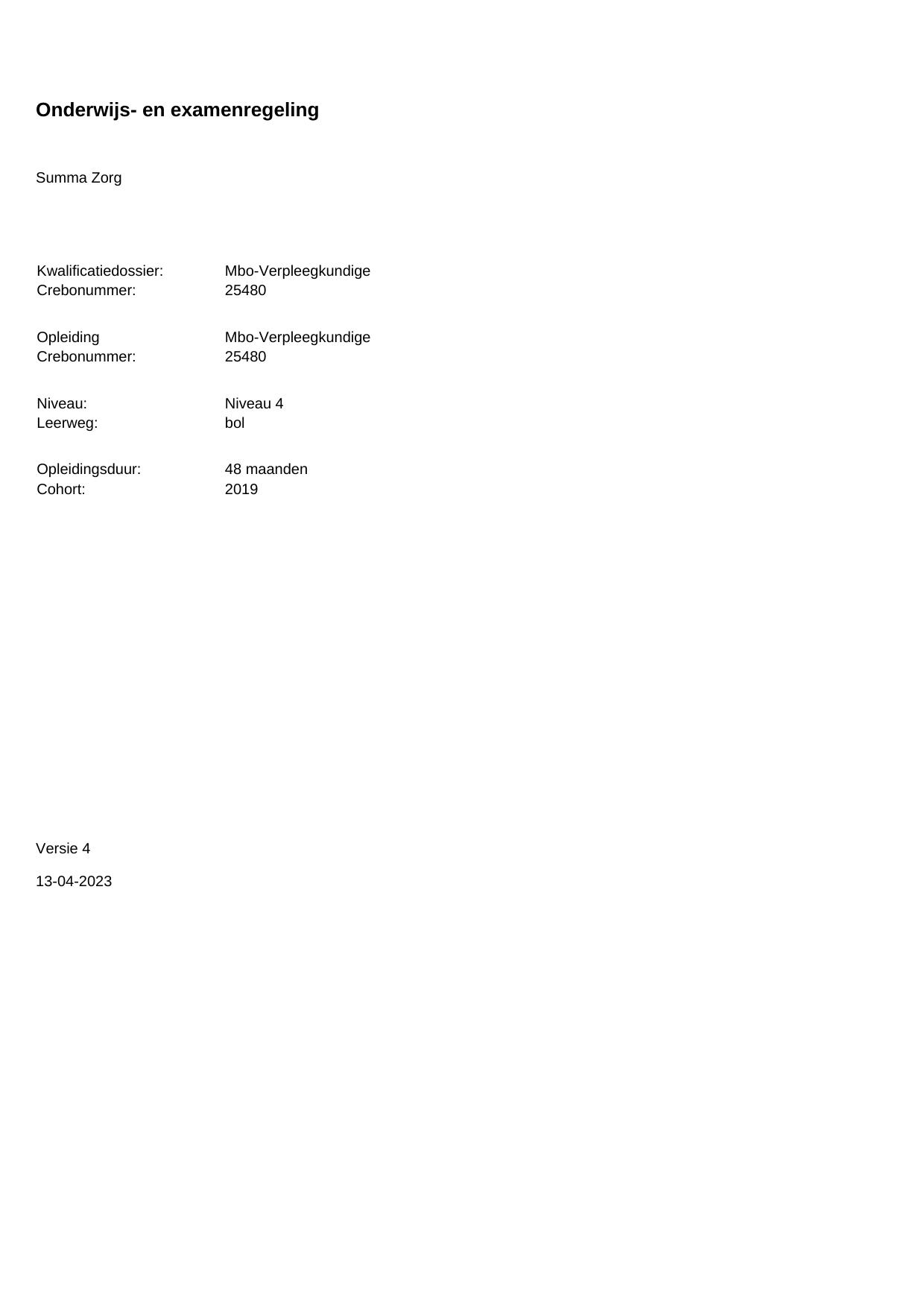 Mbo-Verpleegkundige 25480BOL48.01 in cohort 2019-2020