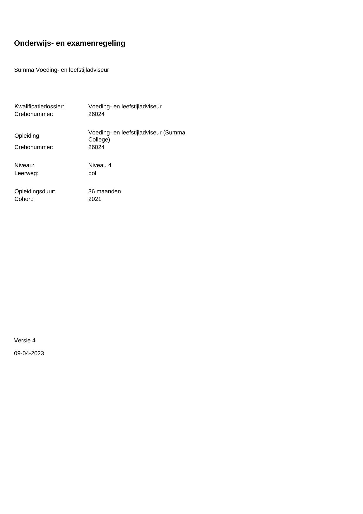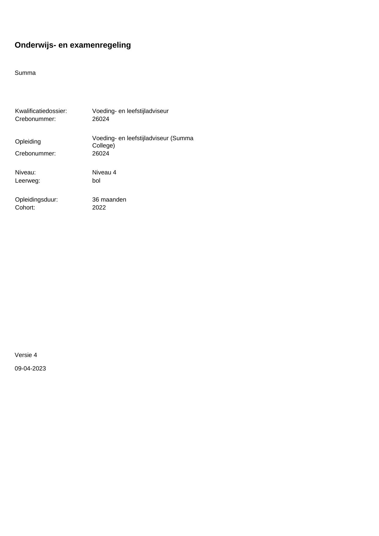 Voeding- en leefstijladviseur (Summa College) 26024BOL36.01 in cohort 2021-2022