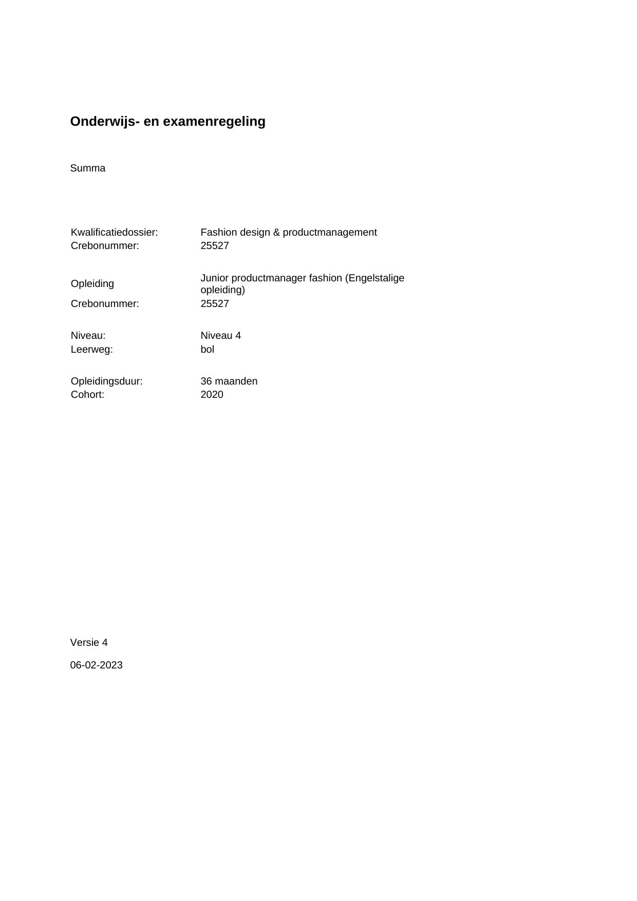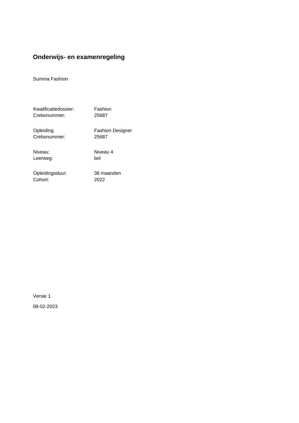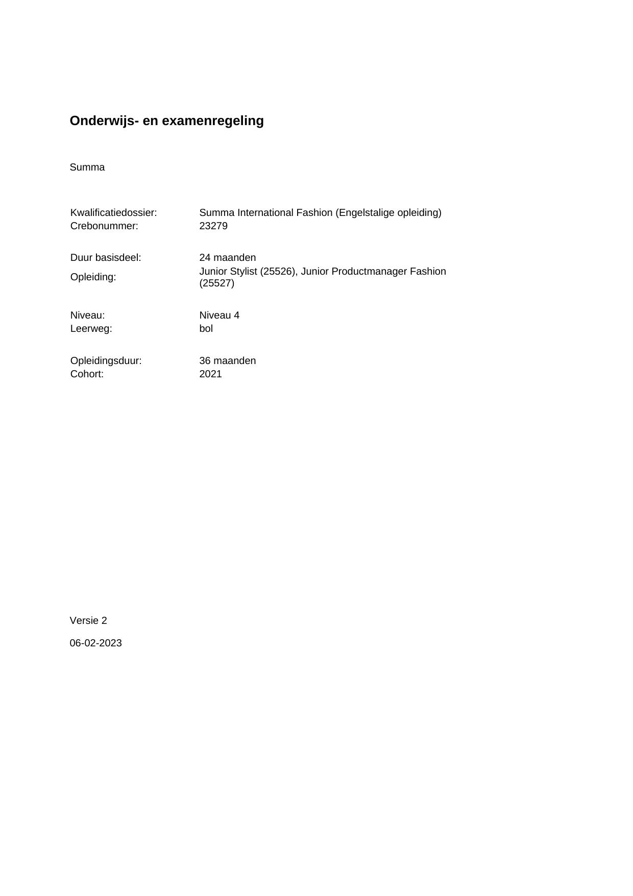 Summa International Fashion (Engelstalige opleiding) 23279BOL36.01 in cohort 2021-2022