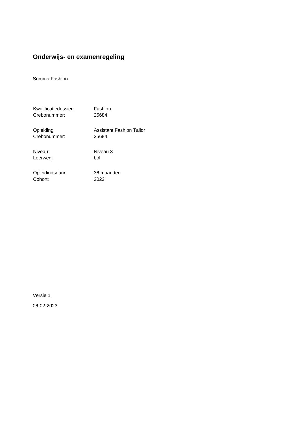 Assistant Fashion Tailor 25684BOL36.01 in cohort 2022-2023