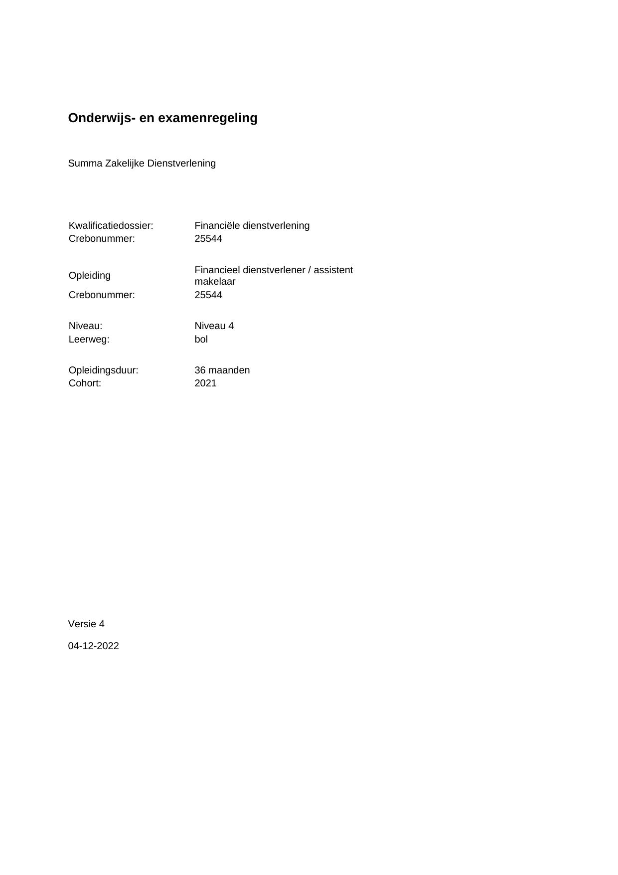 Financieel dienstverlener / assistent makelaar 25544BOL36.01 in cohort 2021-2022