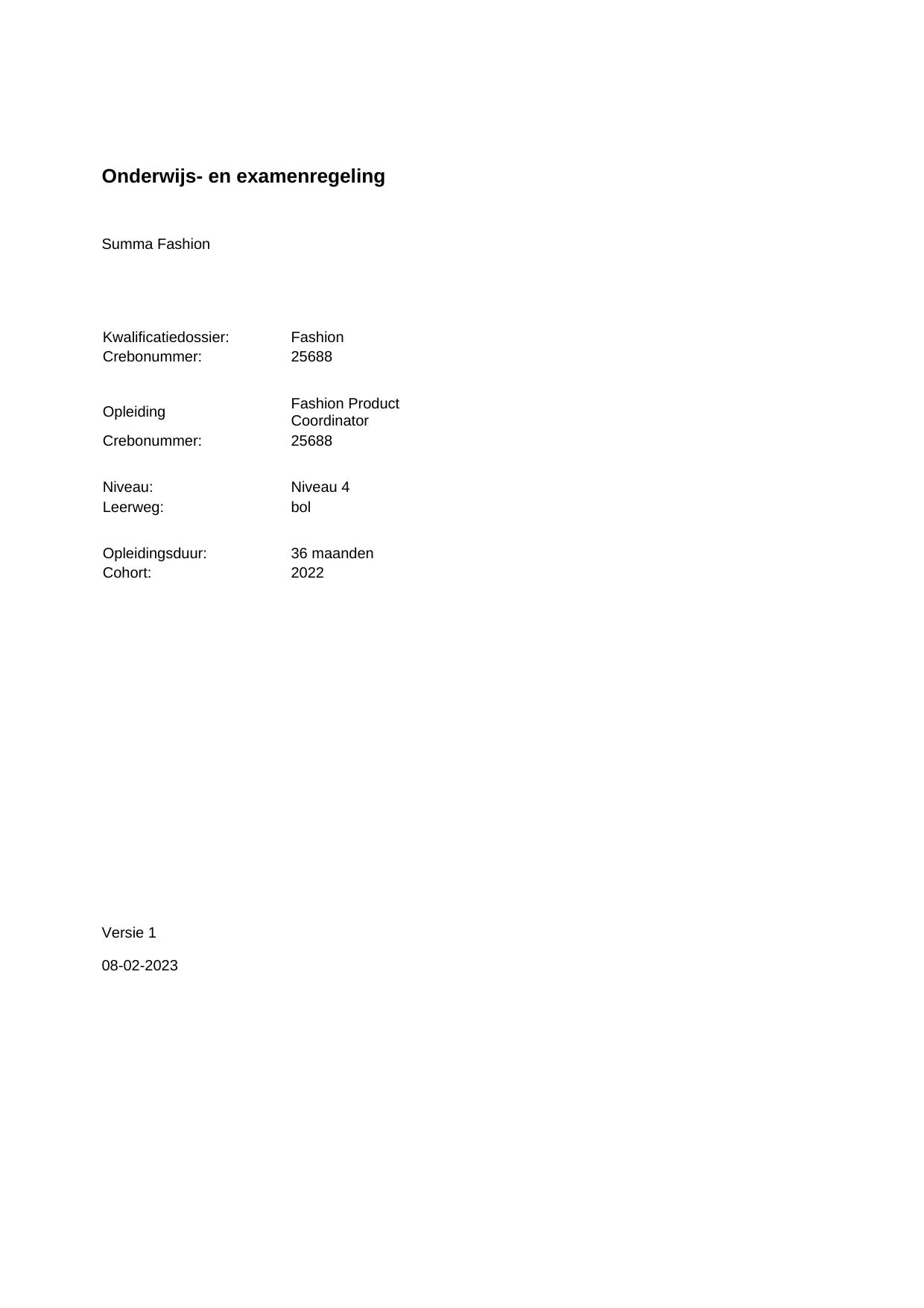 Fashion Product Coordinator 25688BOL36.01 in cohort 2022-2023