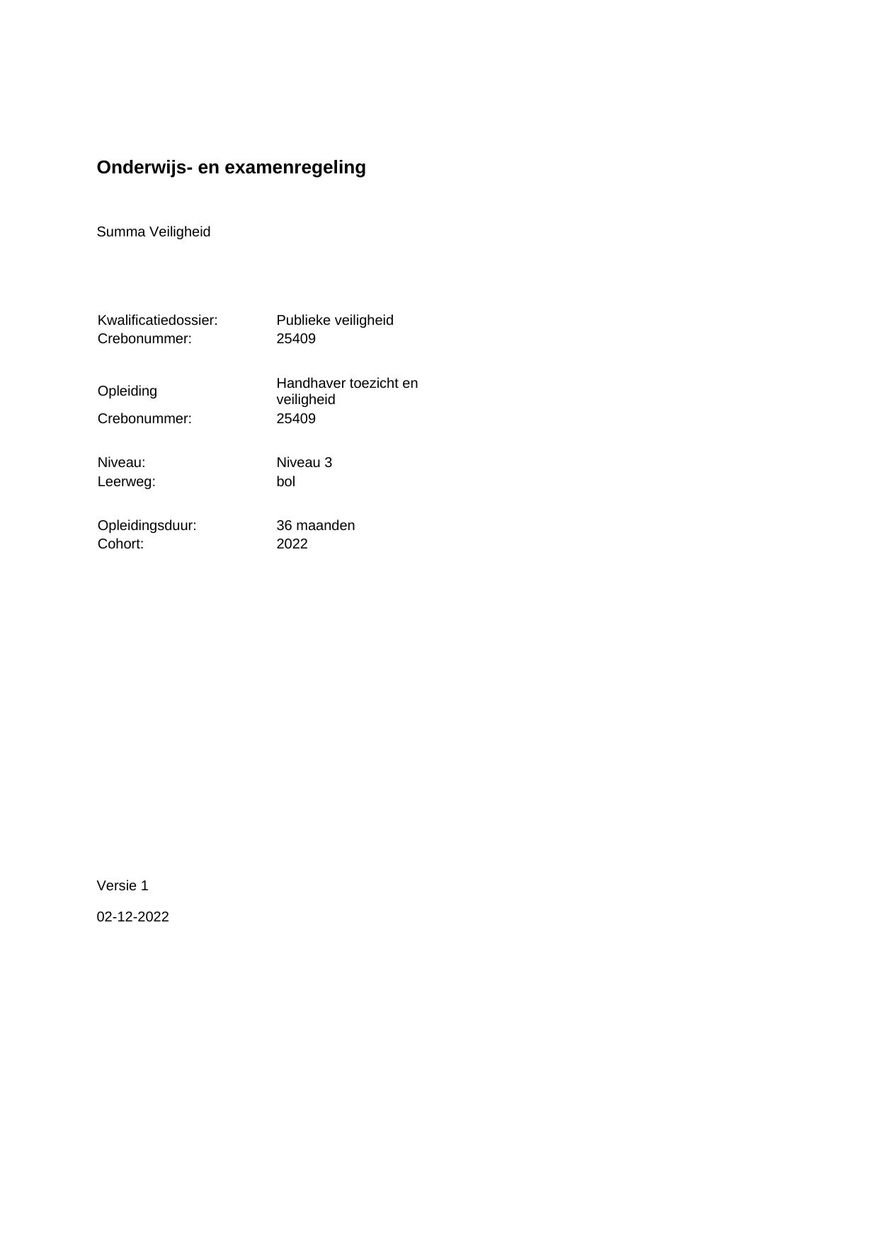 Handhaver toezicht en veiligheid 25409BOL36.01 in cohort 2022-2023