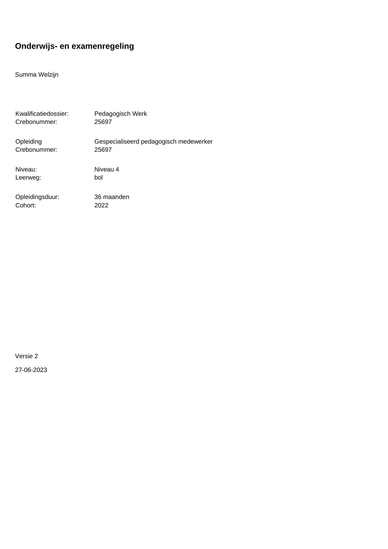 Gespecialiseerd pedagogisch medewerker 25697BOL36.01 in cohort 2022-2023