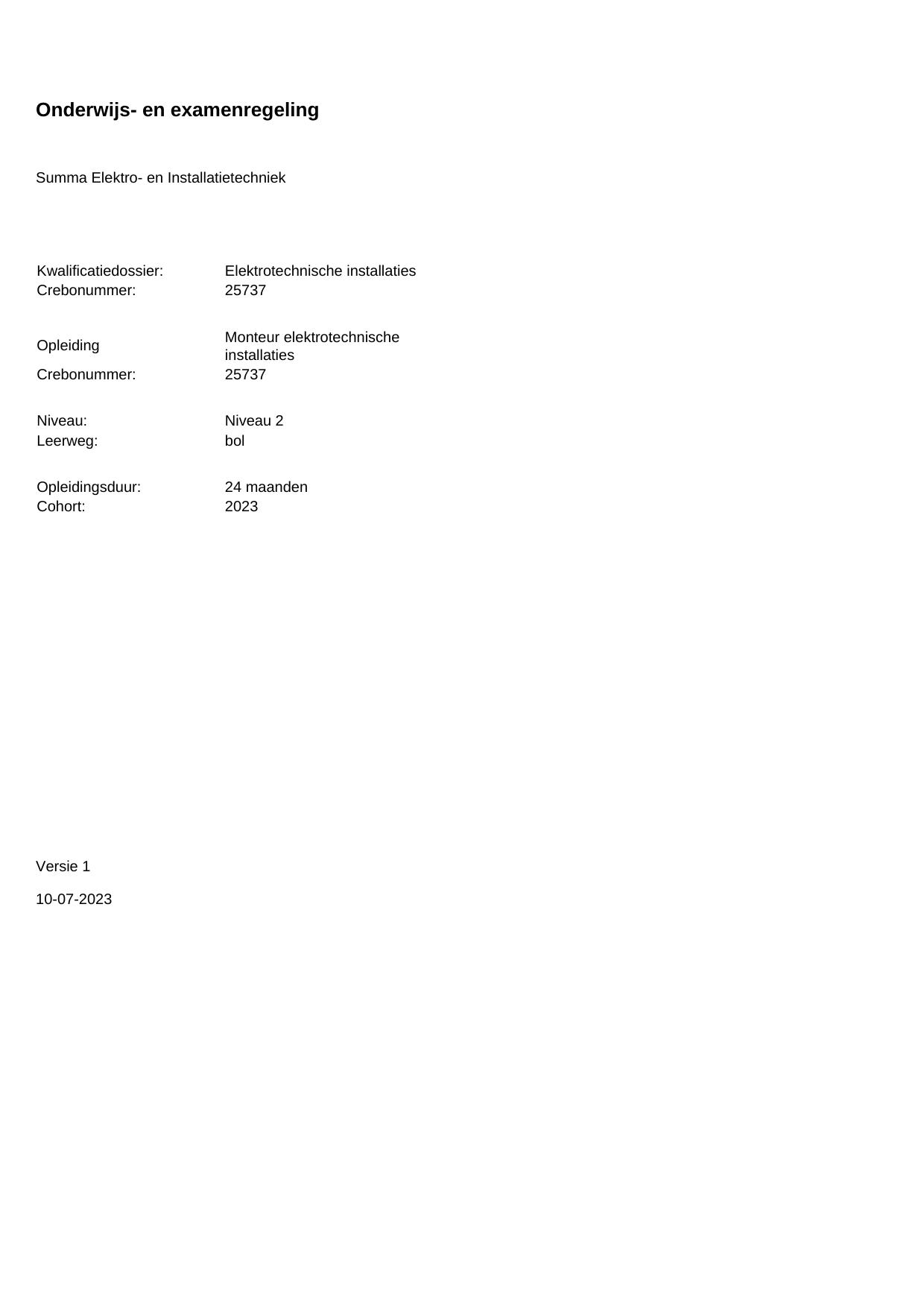 Eerste monteur elektrotechnische installaties in de gebouwde omgeving 25736BOL36.01 in cohort 2023-2024