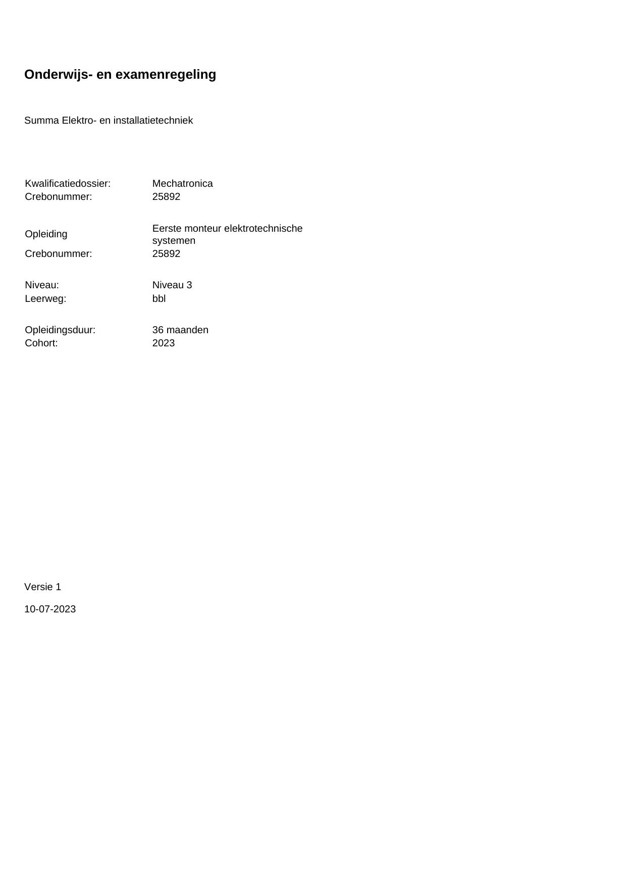 Eerste monteur elektrotechnische systemen 25892BOL36.02 in cohort 2023-2024
