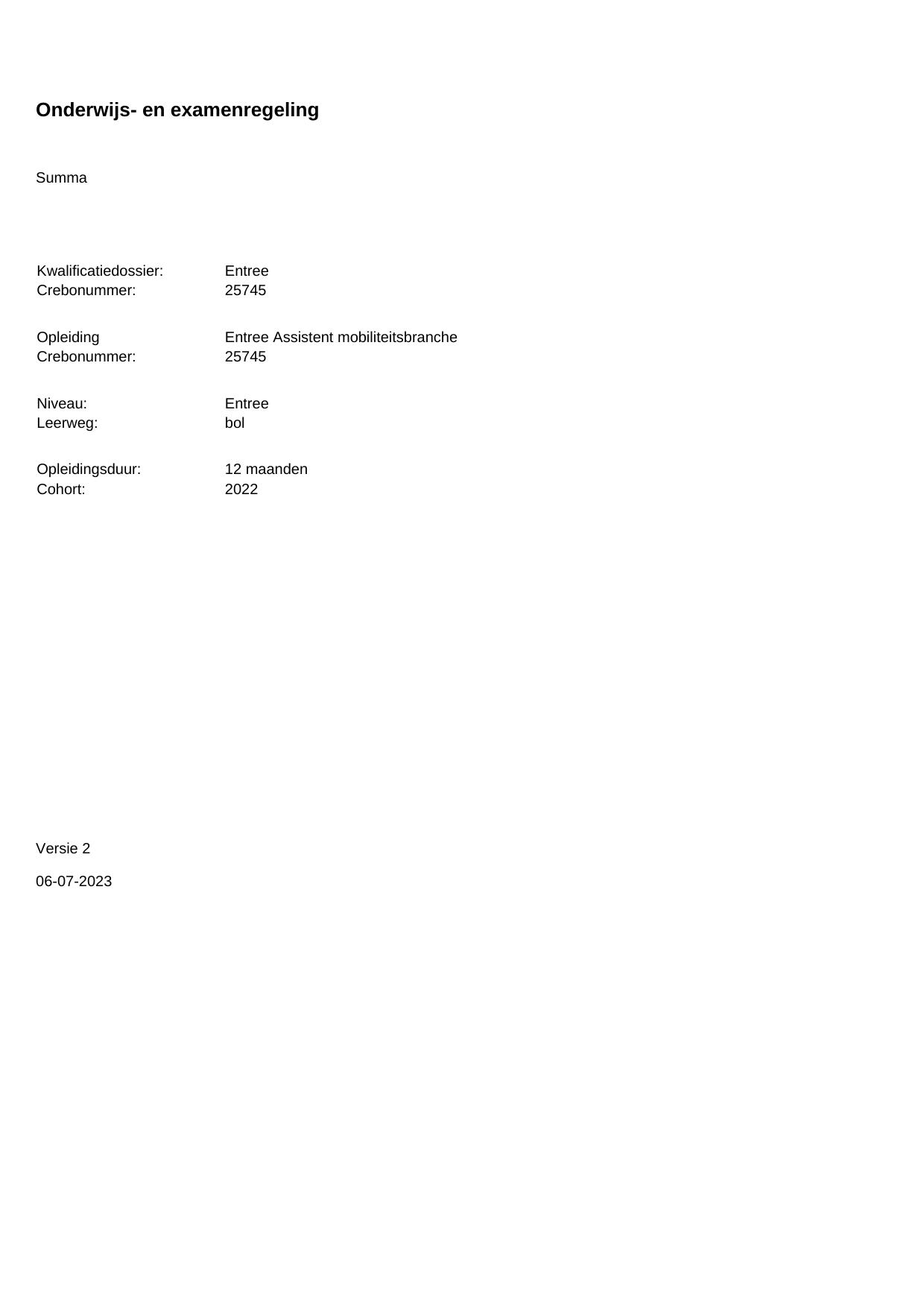 Entree Assistent mobiliteitsbranche 25745BBL12.01 in cohort 2022-2023