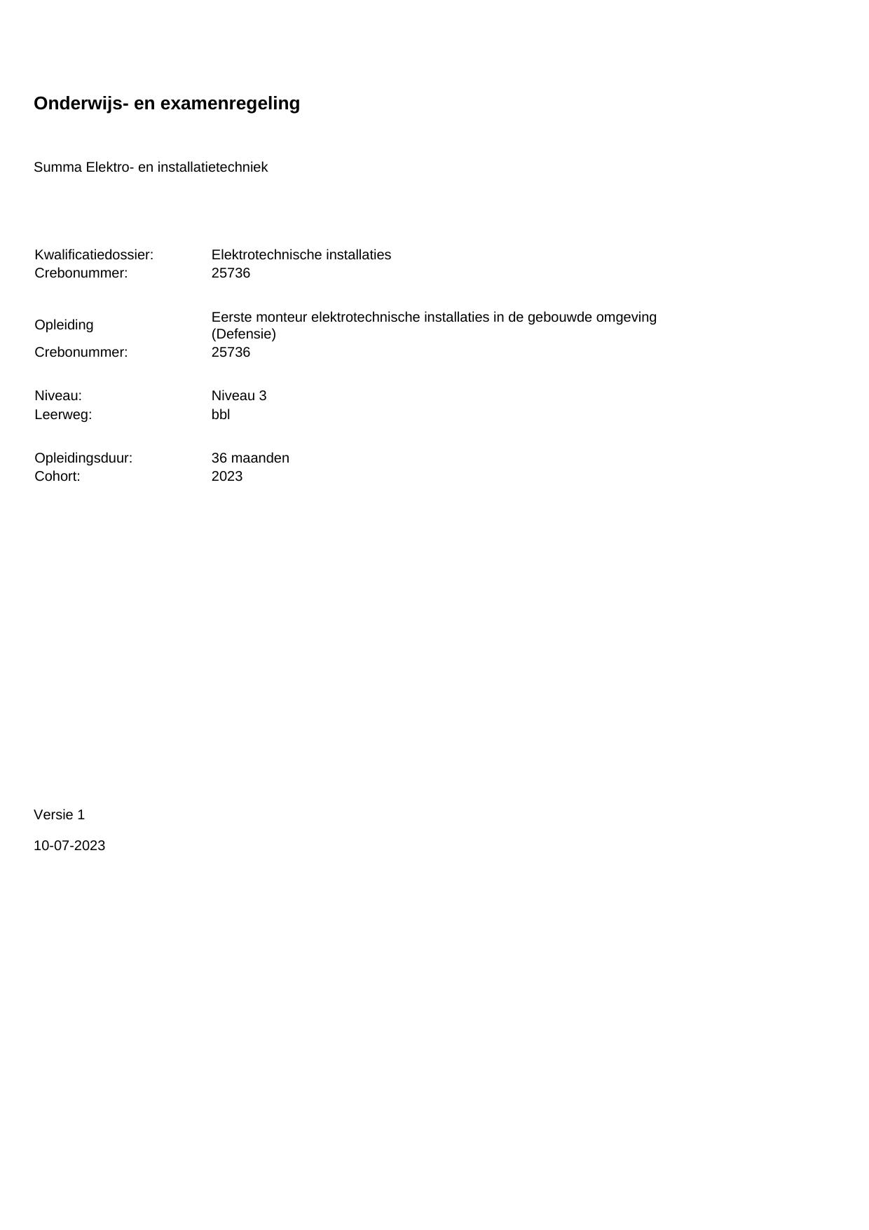 Eerste monteur elektrotechnische installaties in de gebouwde omgeving (Defensie) 25736BBL36.02 in cohort 2023-2024