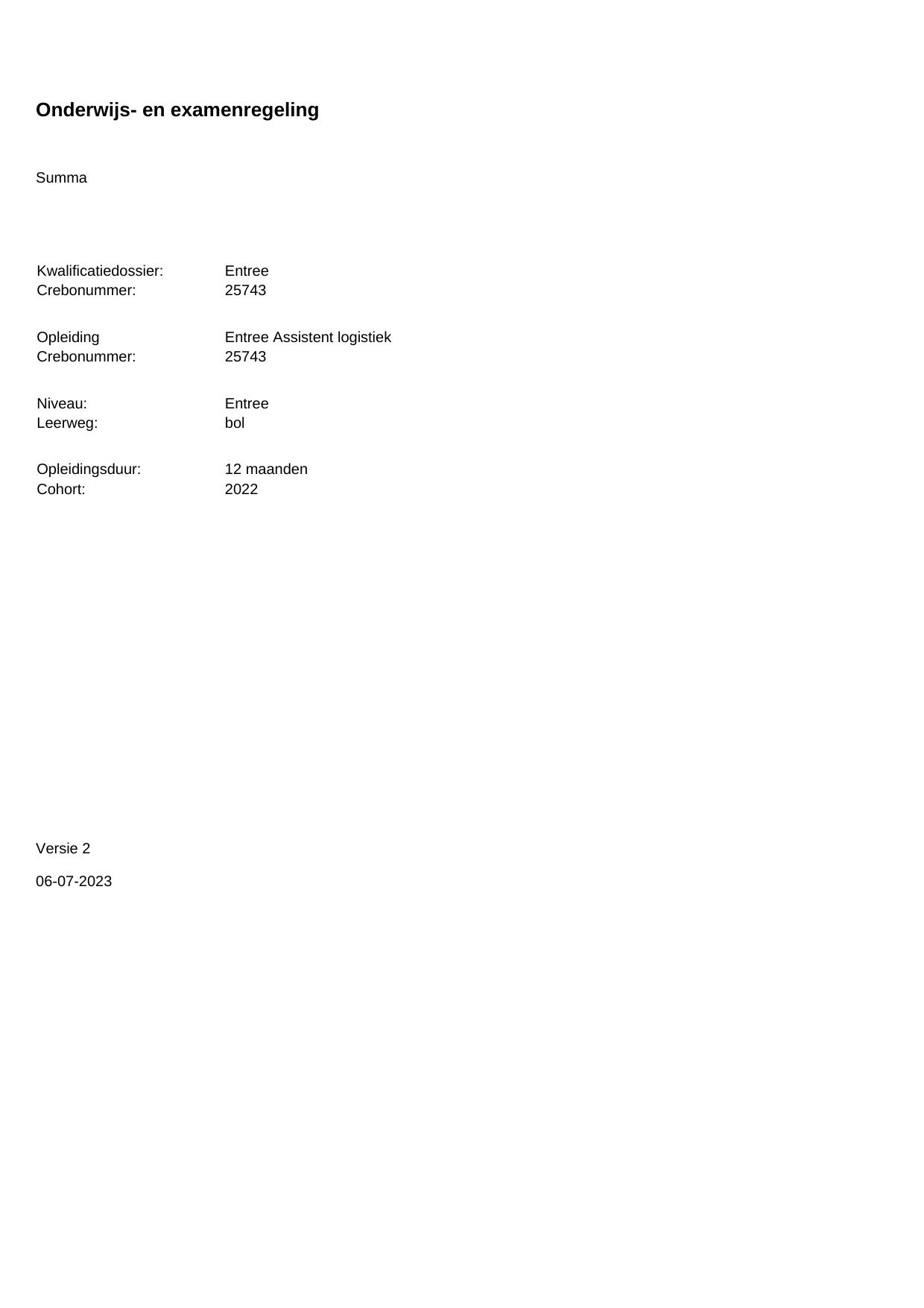 Entree Assistent logistiek 25743BOL12.01 in cohort 2022-2023