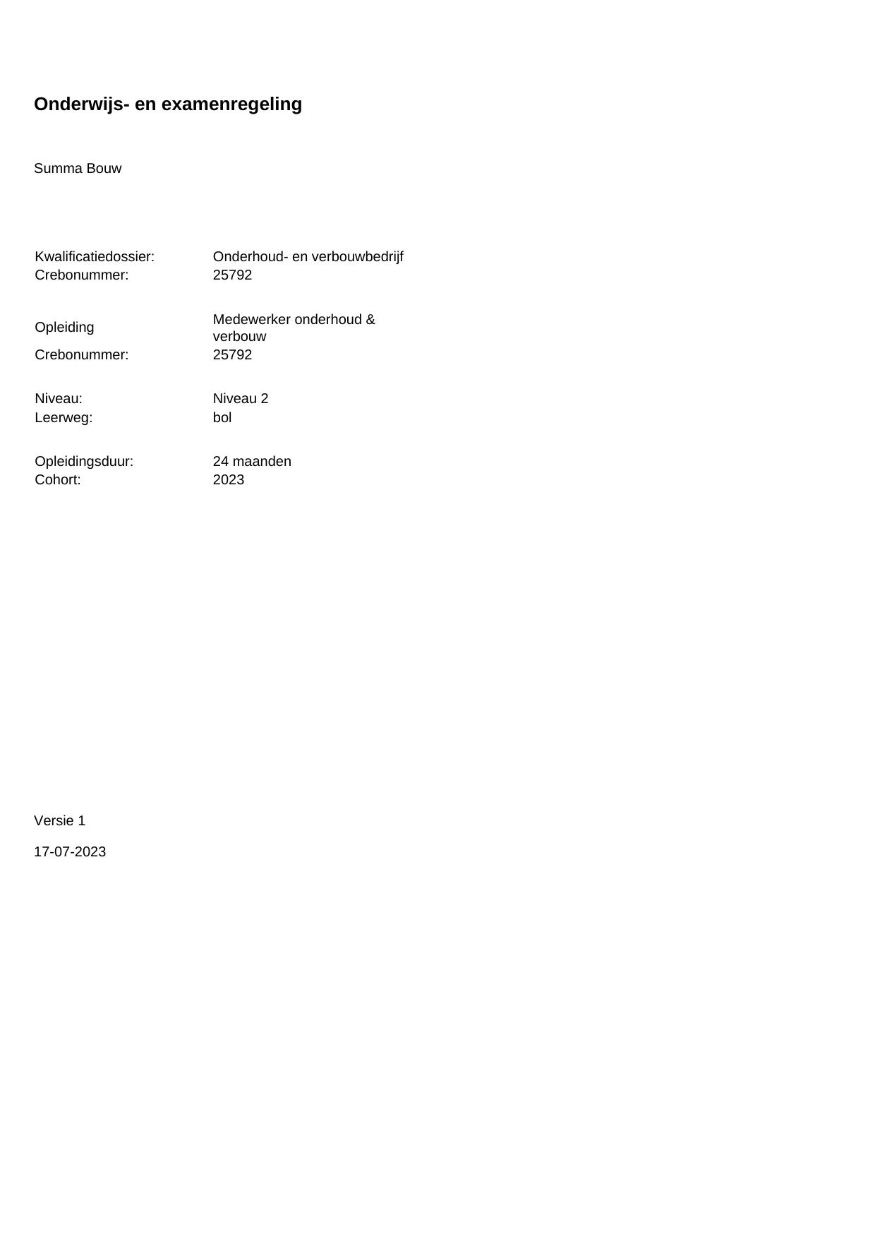 Medewerker onderhoud & verbouw 25792BOL24.02 in cohort 2023-2024