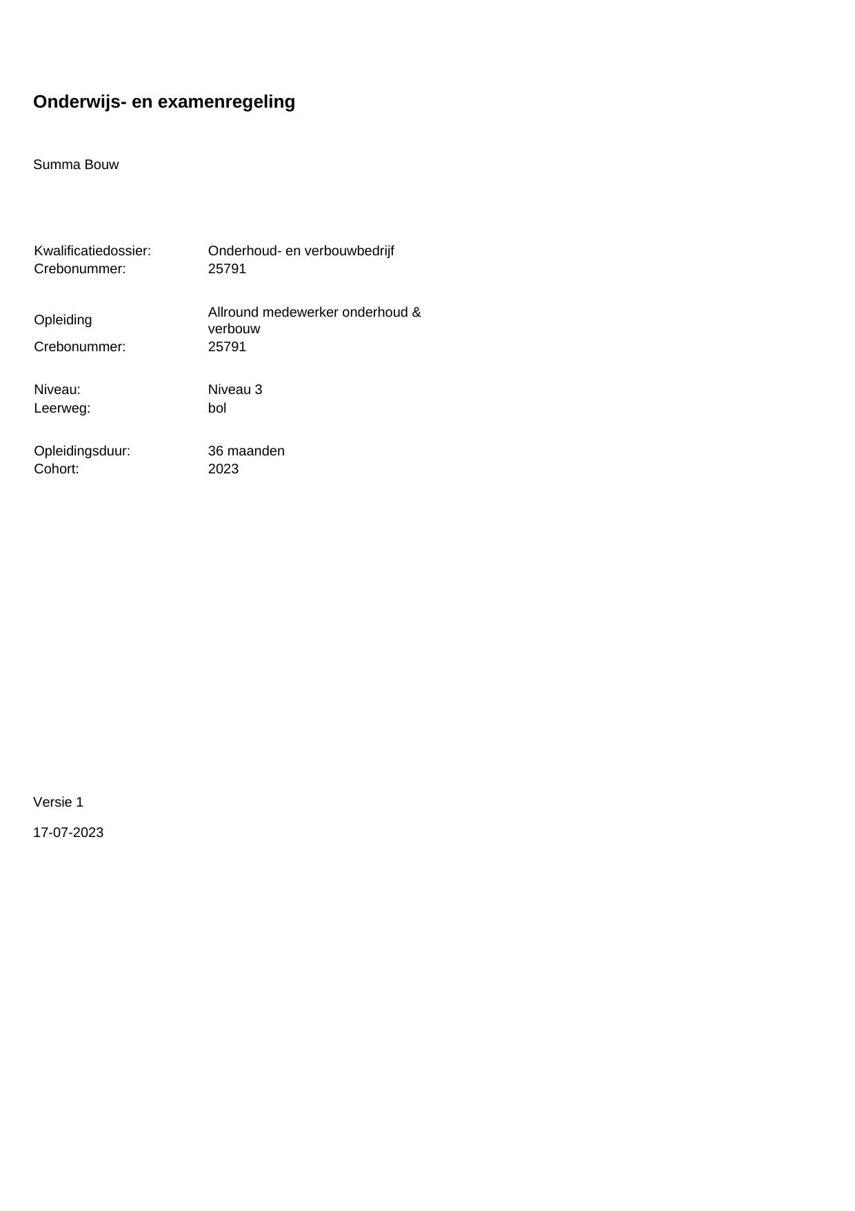 Allround medewerker onderhoud & verbouw 25791BOL36.02 in cohort 2023-2024