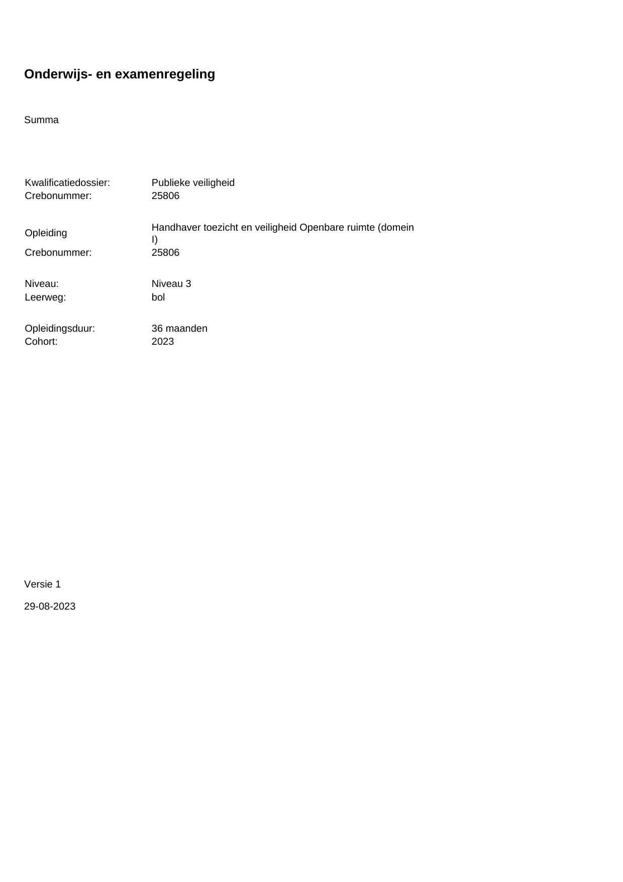 Handhaver toezicht en veiligheid Openbare ruimte (domein I) 25806BOL36.01 in cohort 2023-2024