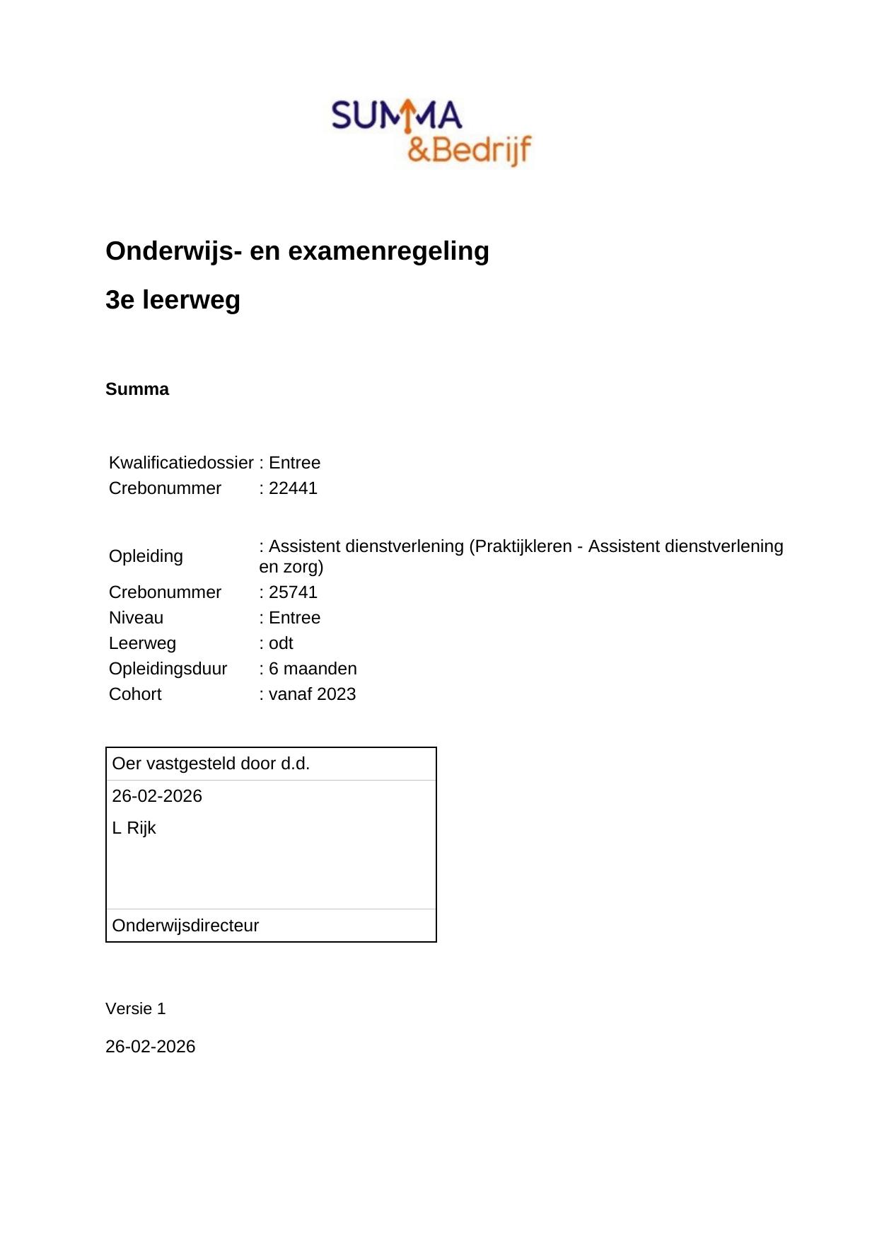 Praktijkleren - Assistent dienstverlening en zorg 25741ODT06.01 in cohort 2023-2024
